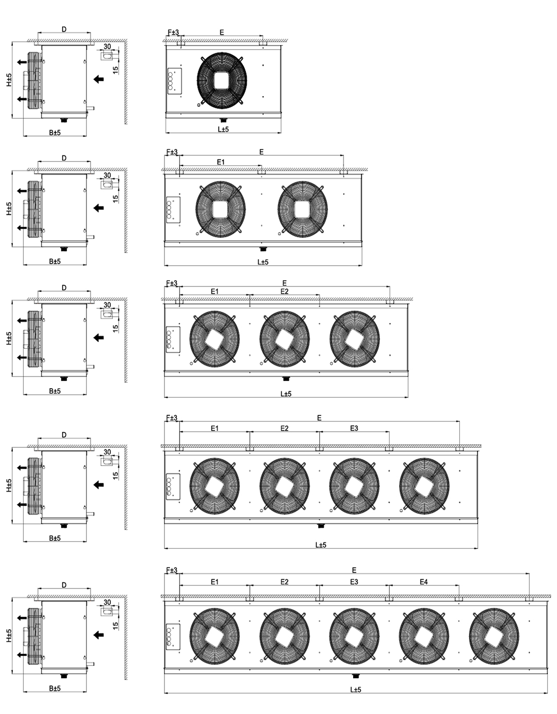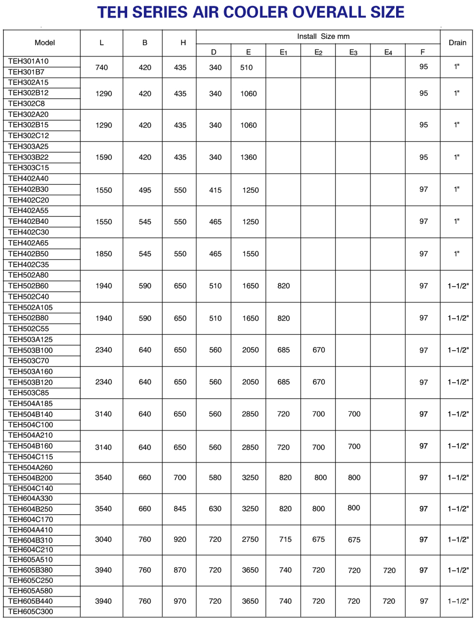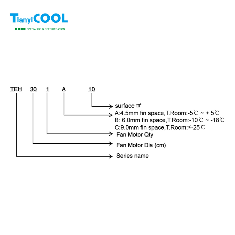 TEH•••B for medium temperatures (≥ -15 °C) with 6 mm fin spacing, electric defrost version (ED) is recommended;