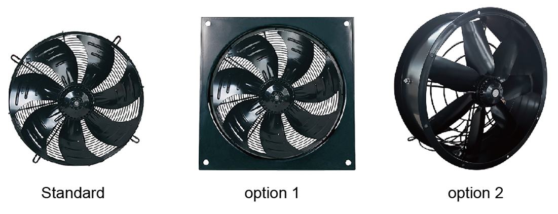 Ф300 mm, external rotor single-phase 220V/50 Hz with ероху coated steel fan guard. Operating temperature: -40 ÷ +70 °C.