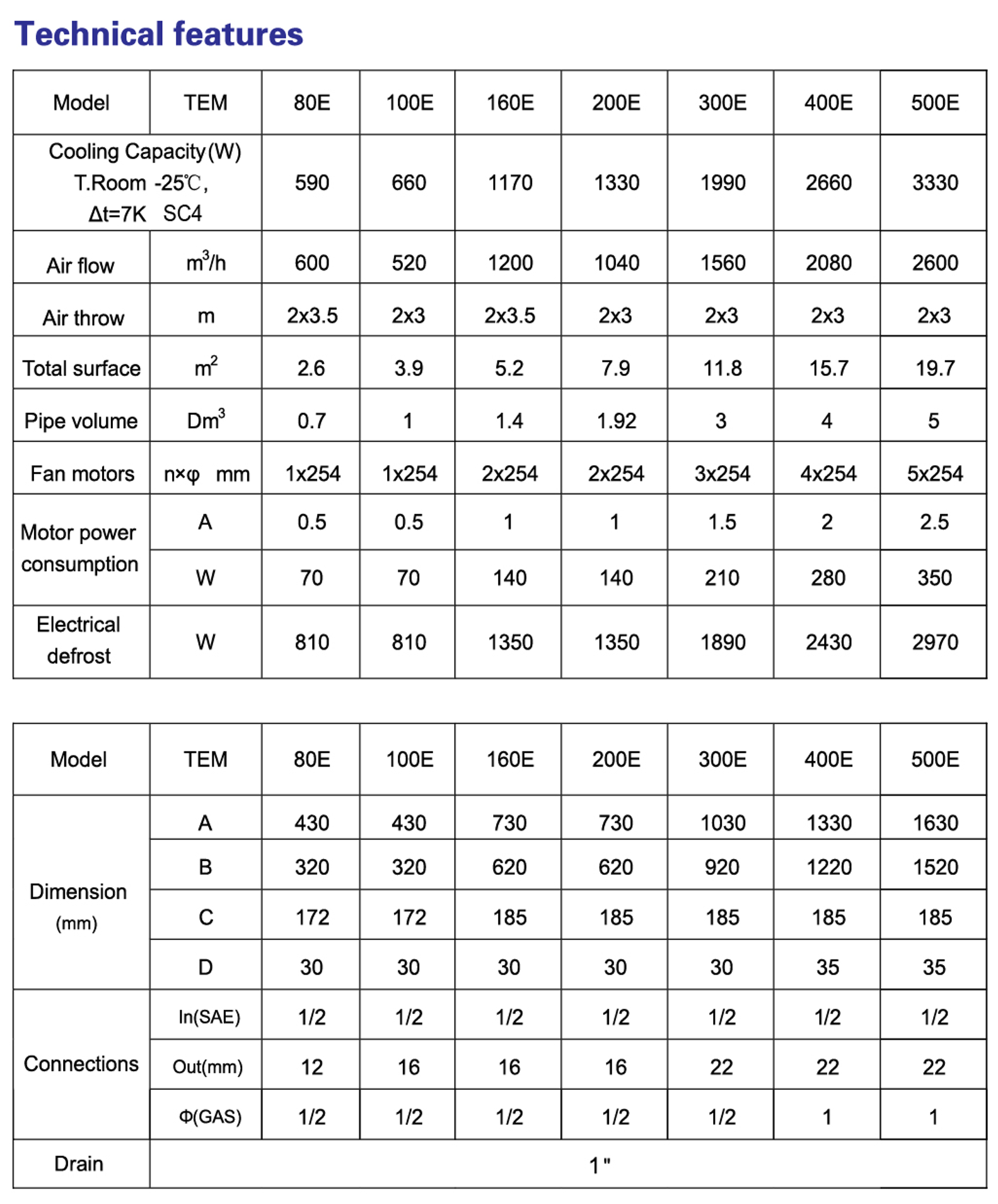 The TEM range dual discharge air coolers are suitable for application in reach-in/walk-in cabinets, display cases and small rectangular based cold rooms.