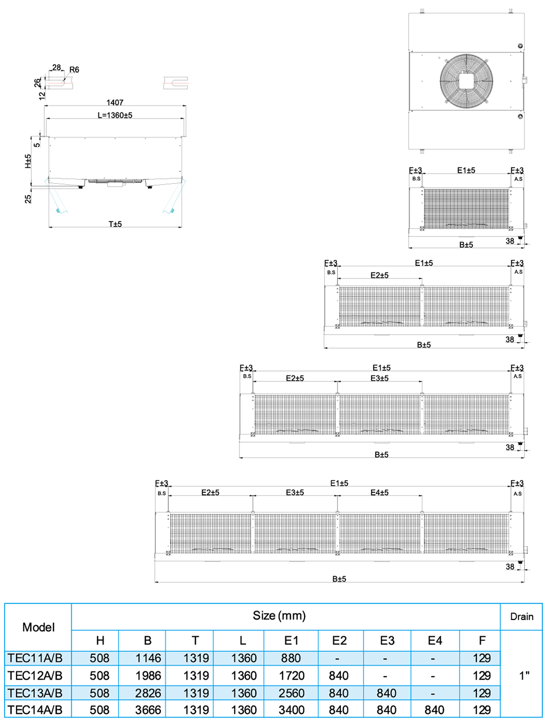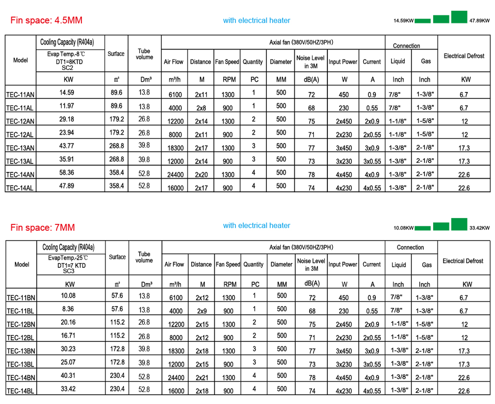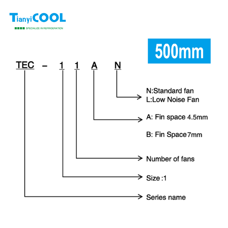 TEC•••B for medium temperatures (≥-25 ℃) with 7 mm fin spacing, electric defrost version ED is recommended;