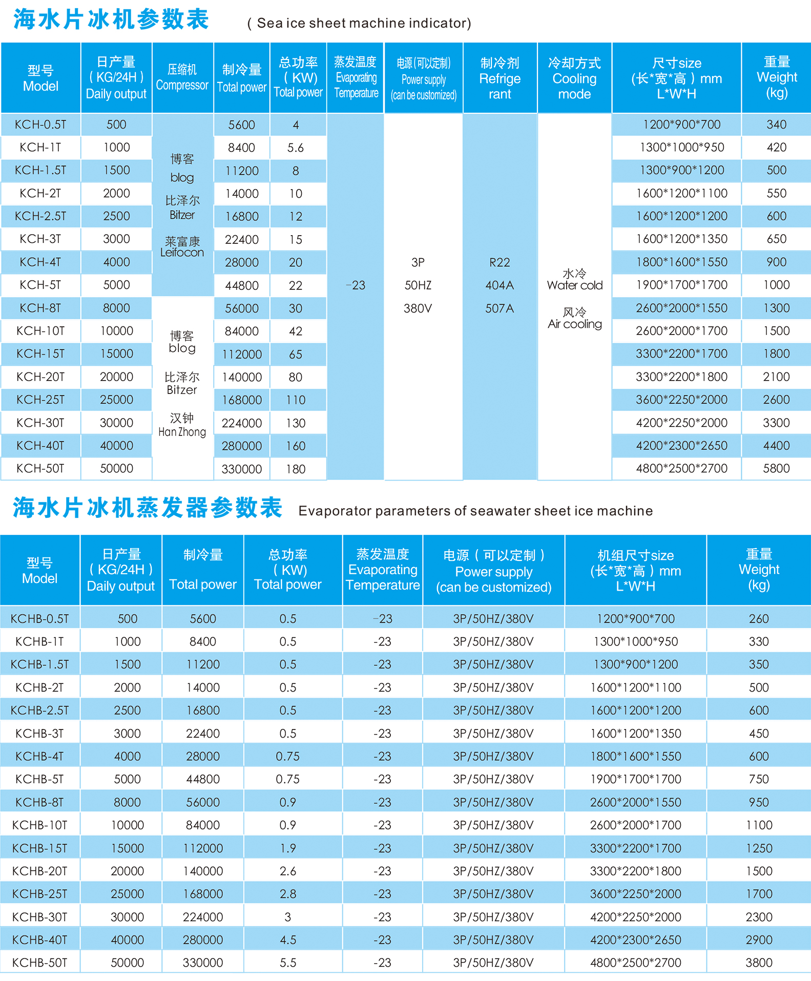 The material of ice flake is stainless steel and anti-corrosion aluminum alloy, its using life can reach to approximately 12 years.